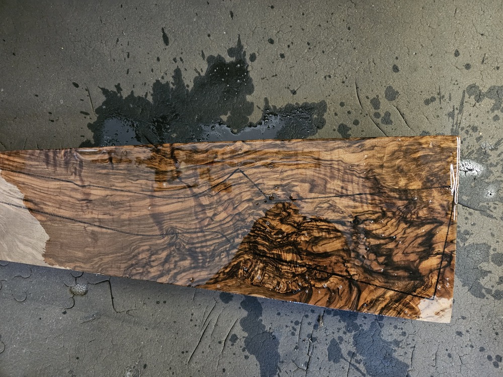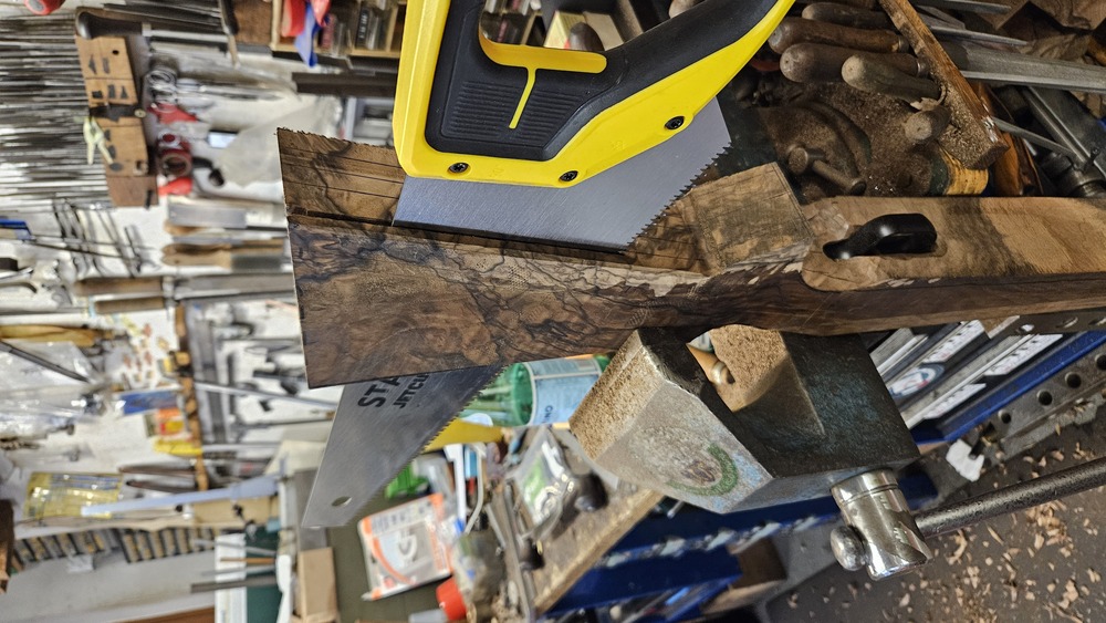 incrustation d'une plaque squelette festonnée en acier dans la rallonge ébène , en attente de gravure