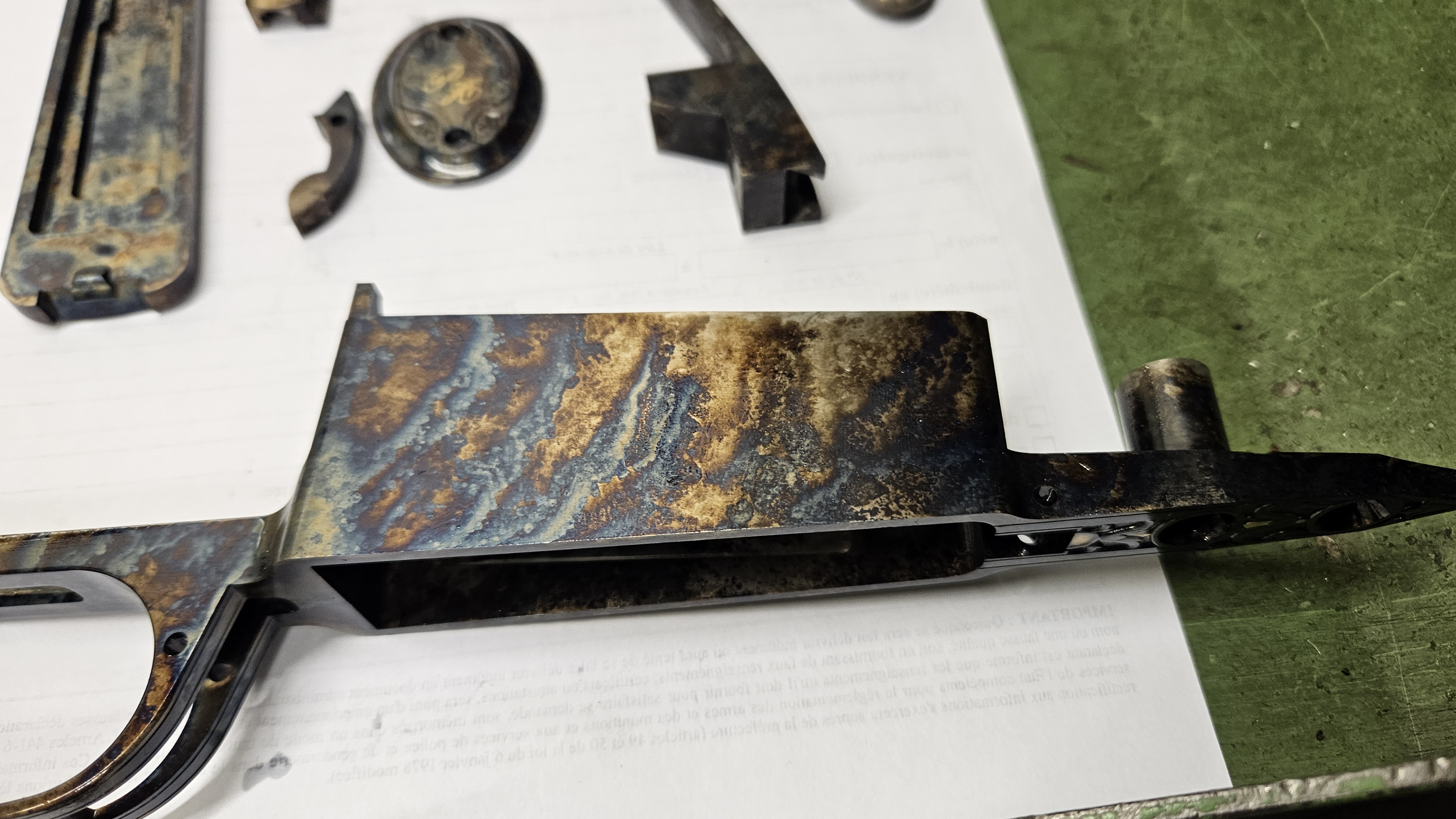 Nous pouvons tremper "jaspé" les pièces en acier de carabines, fusils, armes de poing, ou autre.