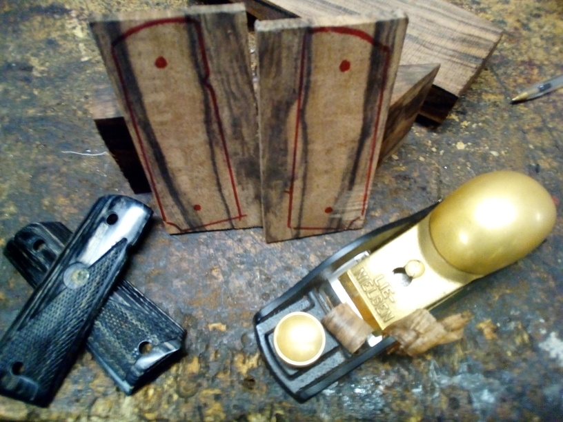plaquette custom en noyer sur un .45